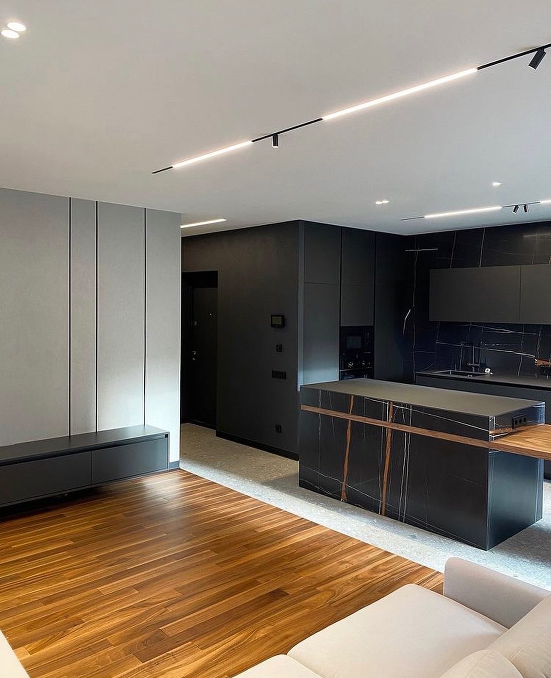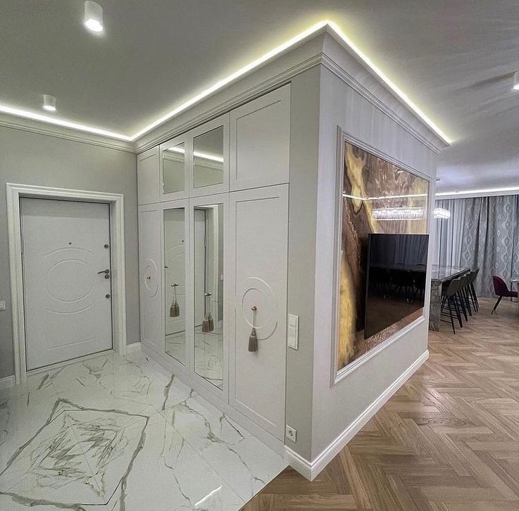 Ниши, подсветка, тёплый пол, шумоизоляция — всё это закладывается в бюджет отдельно.